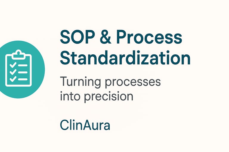 Standard Operating Procedures (SOPs) are the DNA of operational consistency. At ClinAura, we transform SOPs from static documents into dynamic process enablers that guide performance and ensure global compliance.